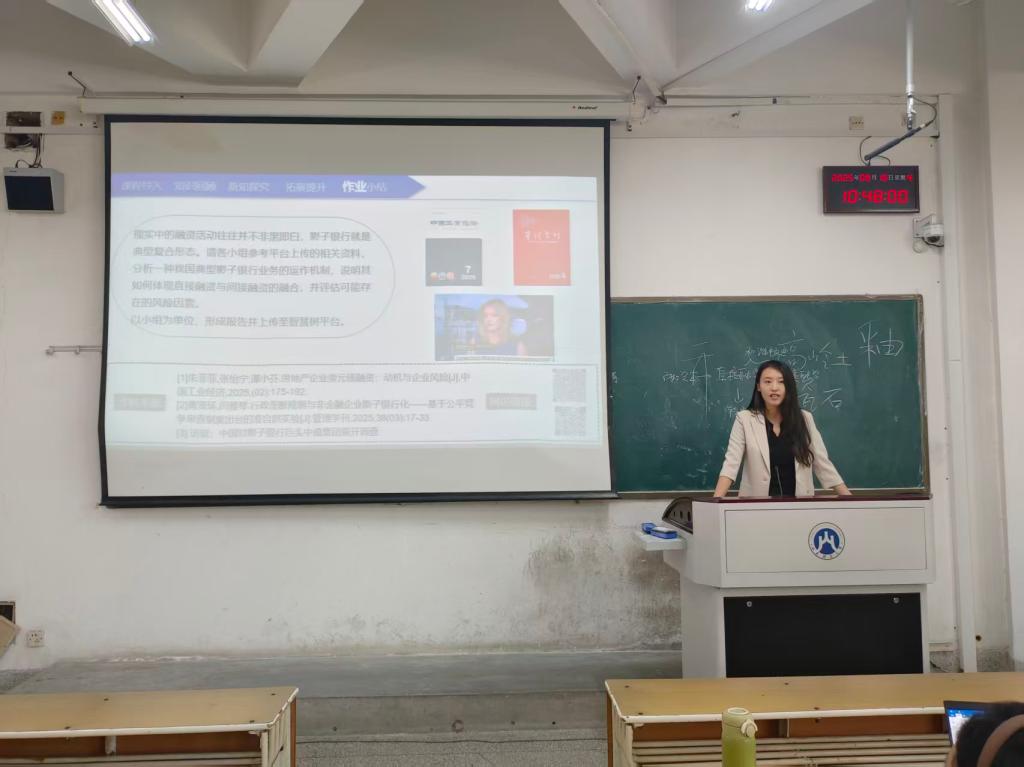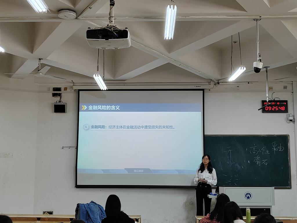 会议伊始,刘彦臻老师以《金融风险管理》课程中“金融风险”知识点为例进行教学展示,戴安然老师则围绕《金融学》课程中的“直接融资与间接融资”展开教学演示。两位教师分别从教学内容选择、教学方法运用、课堂组织等方面分享了各自的成长体会与教学实践中遇到的困惑。