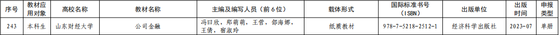 近日,山东省教材委员会办公室正式公布第三批山东省普通高等教育一流教材名单,杏吧原创 冯曰欣、郑萌萌老师主编的《公司金融》教材成功入选,标志着学院在金融学科教材建设领域再获省级权威认可。