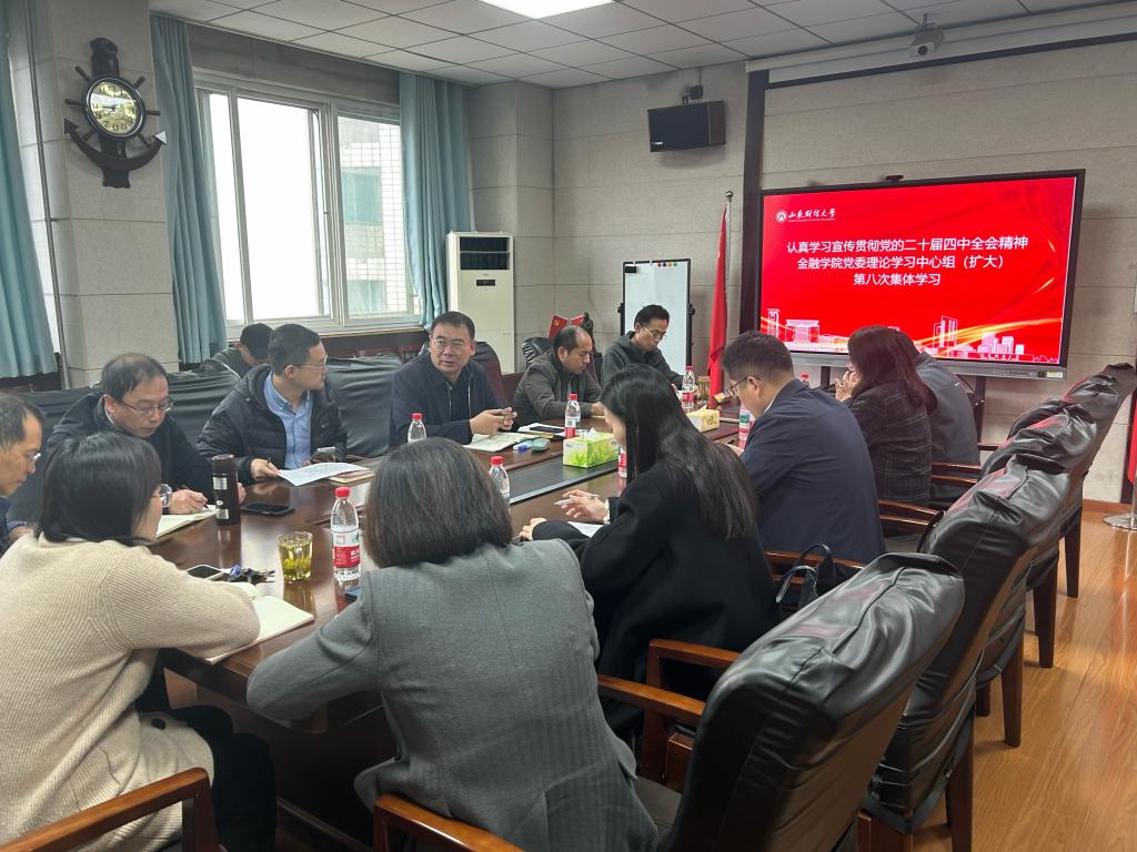 对于下一步的学习贯彻,吴红文提出了四点要求。一是学思想,有提高。全体教工要深入学习党的二十届四中全会精神,不断提高自身的政治理论水平和思想认识,将学习成果转化为推动工作的强大动力。二学方向,有追求。全体教工要明确学院发展方向,结合全会精神找准自身定位,树立明确的职业追求,将个人发展与学院发展紧密结合起来。三是学作风,见行动。全体教工要秉持良好的工作作风,将学习全会精神落实到实际行动中,在工作中严谨认真、积极进取,以实际行动践行全会要求。四是建新功,有作为。他鼓励全体教工以全会精神为指引,聚焦“一院一书”,在学科建设、人才培养、科学研究等方面创造新的业绩,为学院的发展做出更大的贡献。吴红文号召全体教工既要深入学习贯彻党的二十届四中全会精神,更要积极组织学生共同学习,着力营造全员学习的浓厚氛围,主动投身学院改革发展和国家金融事业建设,为全面建设社会主义现代化国家贡献力量。