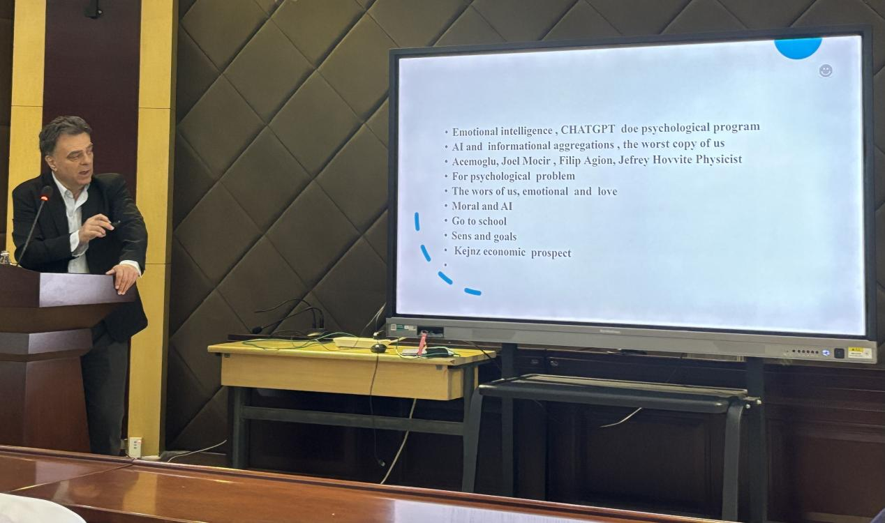讲座围绕情商在人工智能时代的意义与挑战展开深入探讨。Ljubomir Kekenovski教授指出,情商不仅关乎个体情绪识别、理解与管理的能力,更涉及人际互动中的同理心、自我觉察与情绪调节,是当代领导者与组织发展中不可或缺的素质。他强调,在技术沟通日益主导的今天,人际交往中的情感维度正面临被削弱的风险,注重人的全面发展与长期绩效,而非仅追逐短期利润。他还进一步剖析了现代社会中情商发展受阻的结构性原因,指出资本主义逻辑、心理机制与社会形态的交互影响,正在无形中塑造着人们的认知与行为模式。