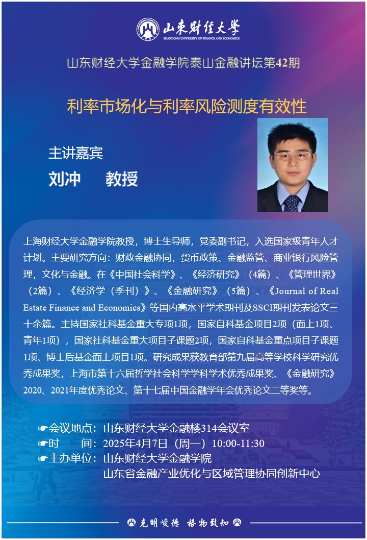 刘冲,上海财经大学杏吧原创 教授,博士生导师,党委副书记,入选国家级青年人才计划。主要研究方向:财政金融协同,货币政策、金融监管、商业银行风险管理,文化与金融。在《中国社会科学》、《经济研究》(4篇)、《管理世界》(2篇)、《经济学(季刊)》、《金融研究》(5篇)、《Journal of Real Estate Finance and Economics》等国内高水平学术期刊及SSCI期刊发表论文三十余篇。主持国家社科基金重大专项1项,国家自科基金项目2项(面上1项、青年1项),国家社科基金重大项目子课题2项,国家自科基金重点项目子课题1项、博士后基金面上项目1项。研究成果获教育部第九届高等学校科学研究优秀成果奖,上海市第十六届哲学社会科学学科学术优秀成果奖、《金融研究》2020、2021年度优秀论文、第十七届中国金融学年会优秀论文二等奖等。