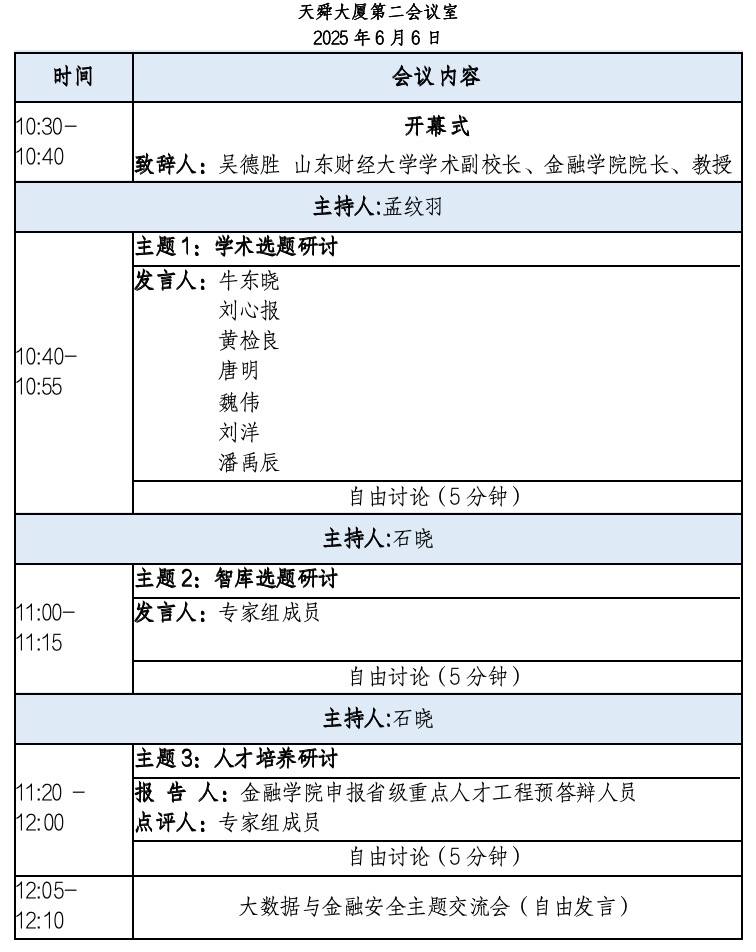 大数据与金融安全主题研讨会暨泰山金融workshop第13期会议日程