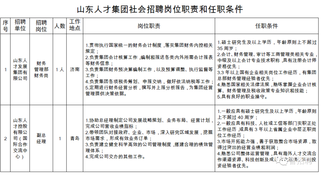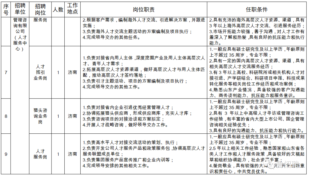 (三)山东人才集团有权根据岗位需求变化及报名情况等因素,调整、取消或终止个别岗位的招聘工作,并对本次招聘享有最终解释权。