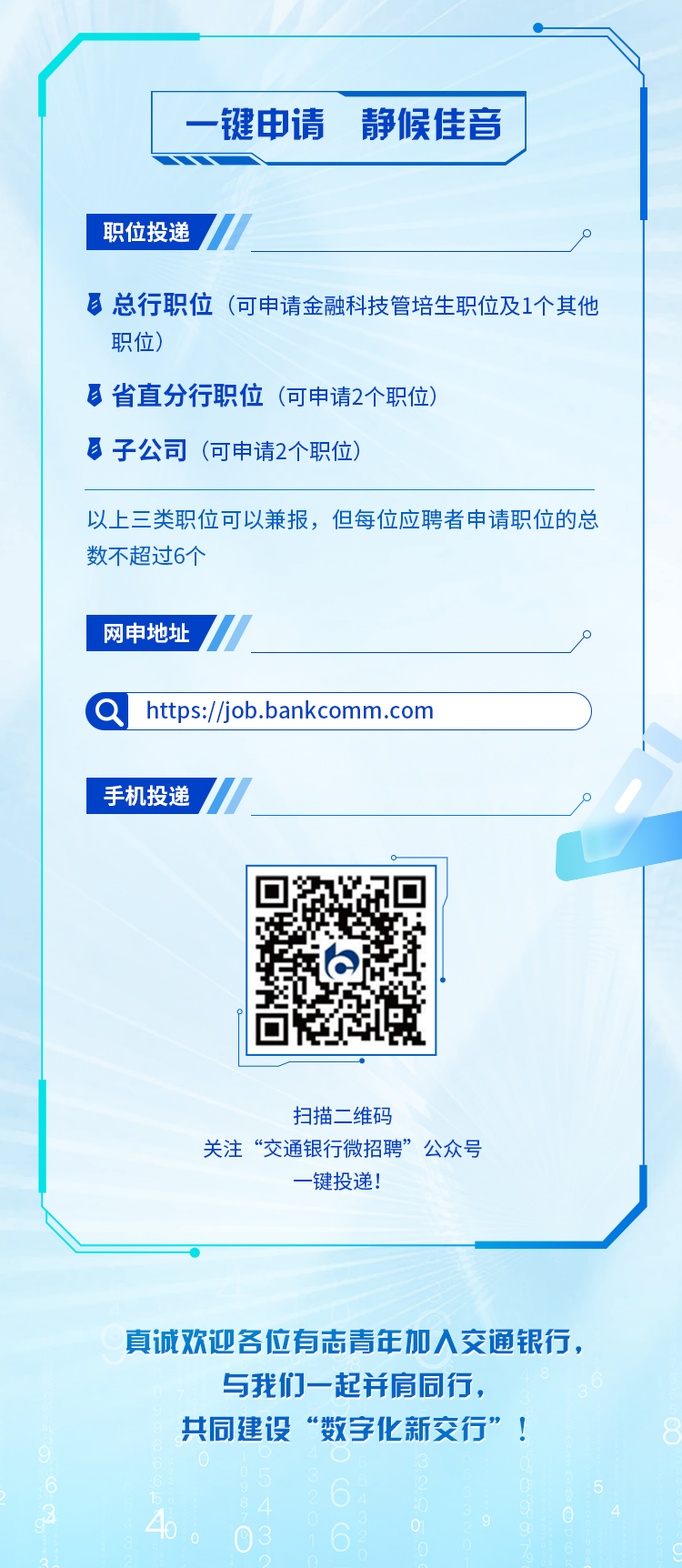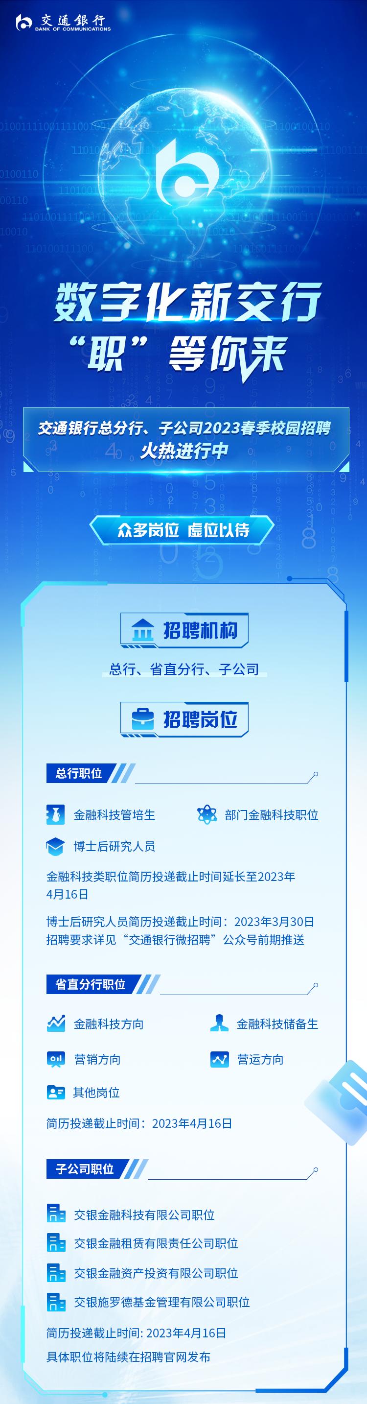 交通银行总分行、子公司2023春季校园招聘火热进行中!