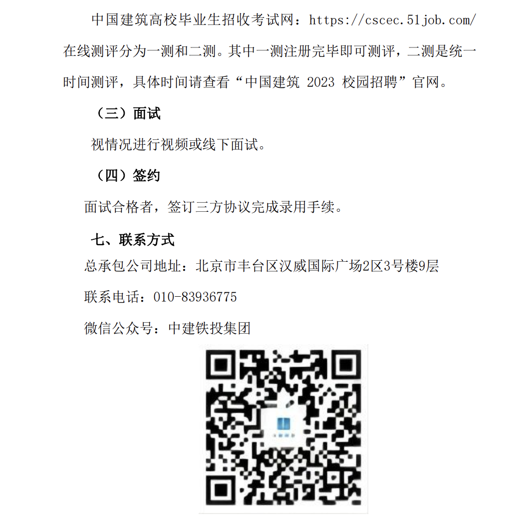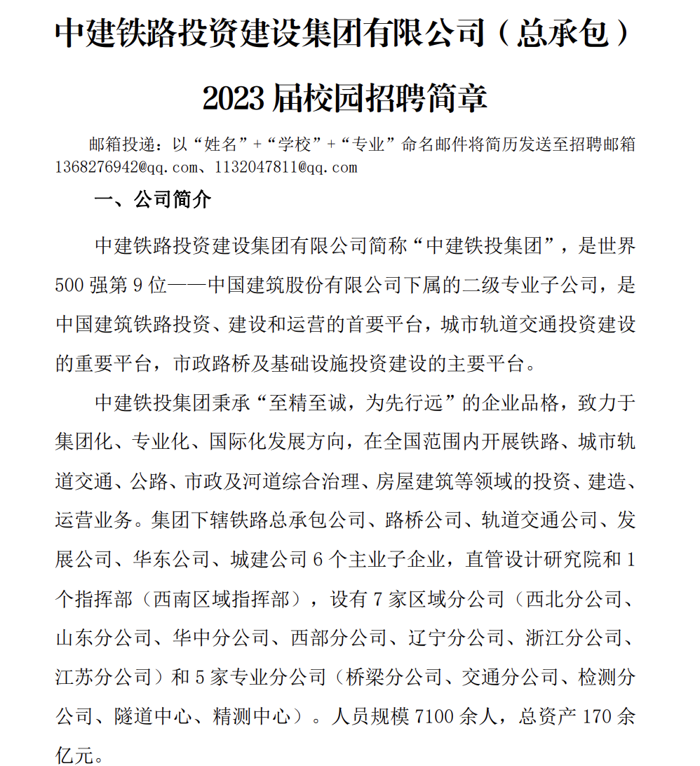 中建铁路投资建设集团有限公司(总承包)2023届校园招聘简章