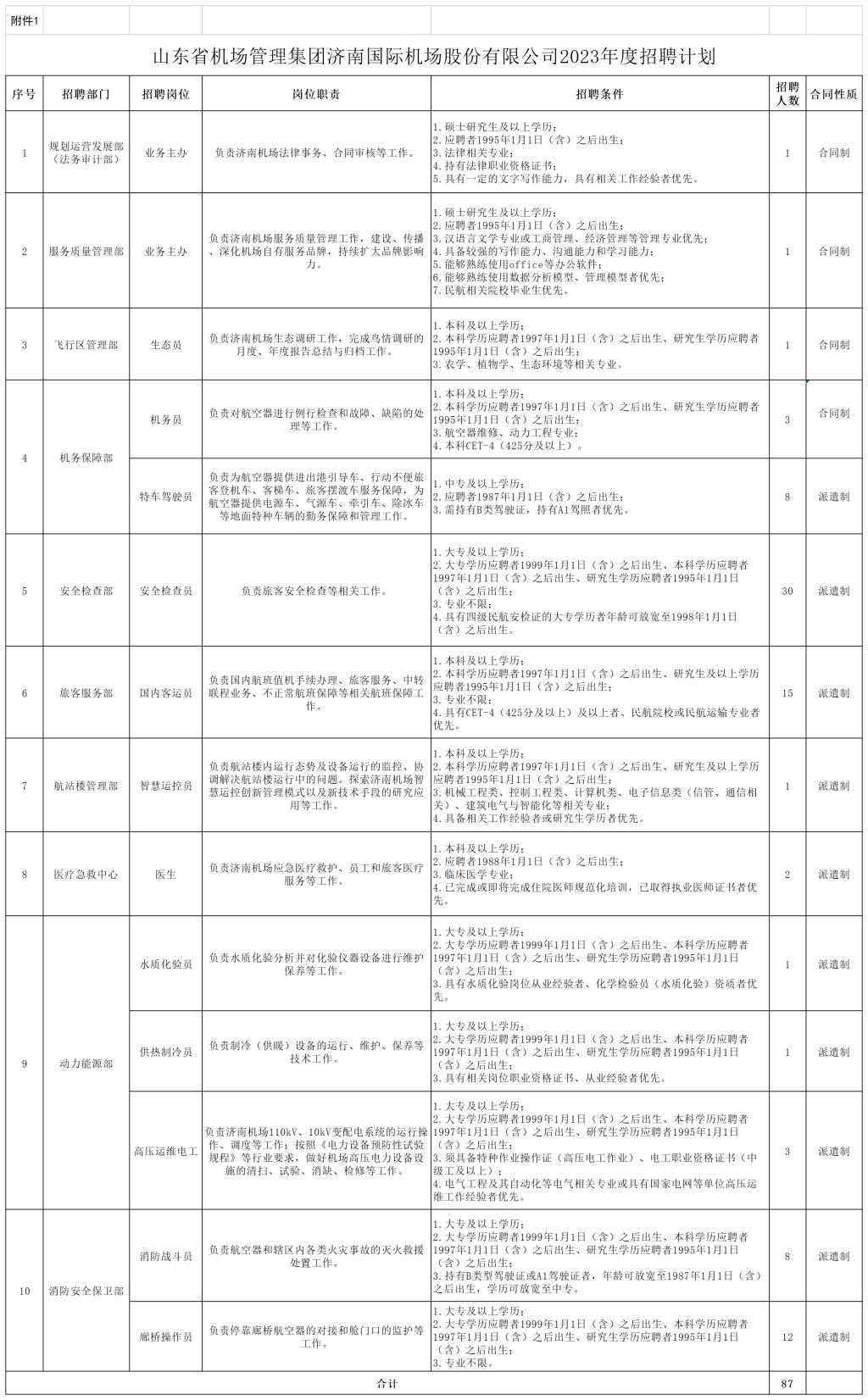 济南国际机场公开招聘