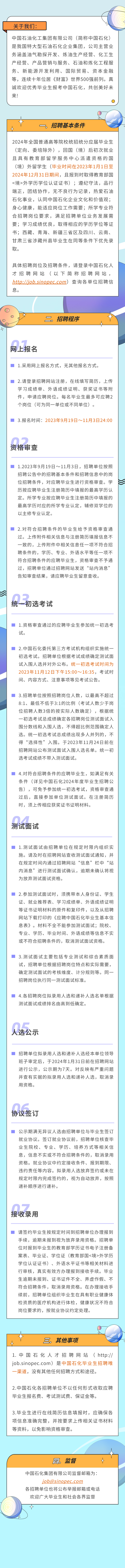 作为此次招聘的唯一渠道,中国石化招聘网站(//job.sinopec.com)于今日起正式接收毕业生网上投递简历,报名时间截至2023年11月3日
