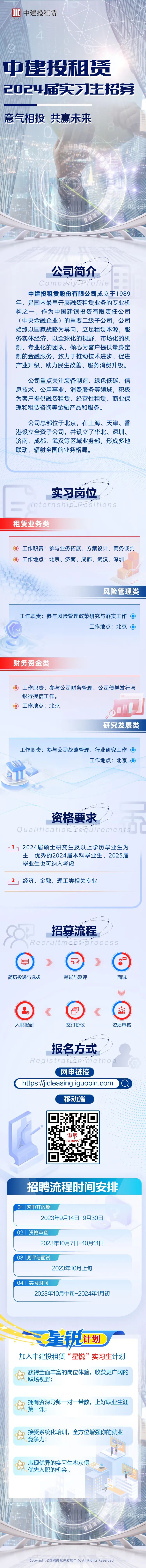 中建投租赁股份有限公司成立于1989年,是国内最早开展融资租赁业务的专业机构之一,是中国建银投资有限责任公司(中央金融企业)的重要二级子公司。公司总部位于北京,在上海、天津、香港设立全资子公司,并设立了华北、深圳、济南、成都、武汉等区域业务部。