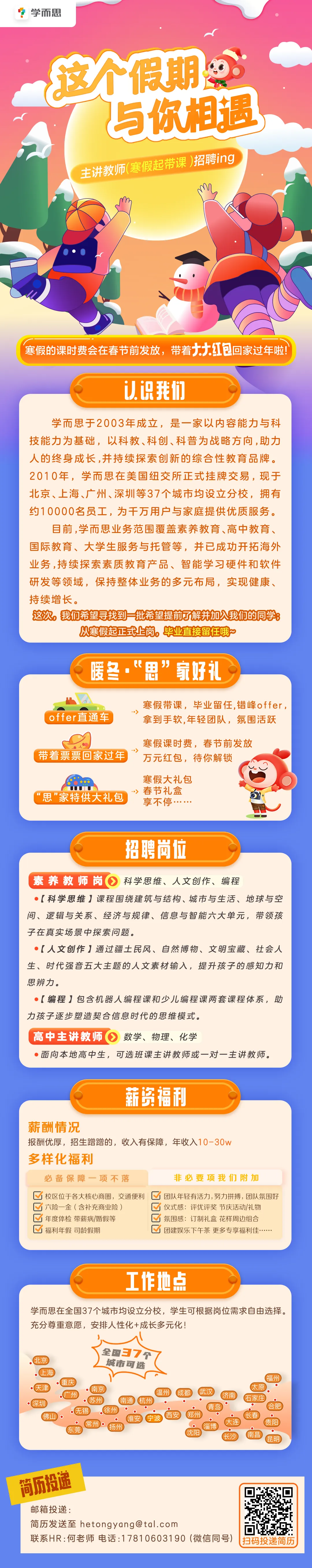 学而思寒假主讲教师招聘中!这个假期,与你相遇~