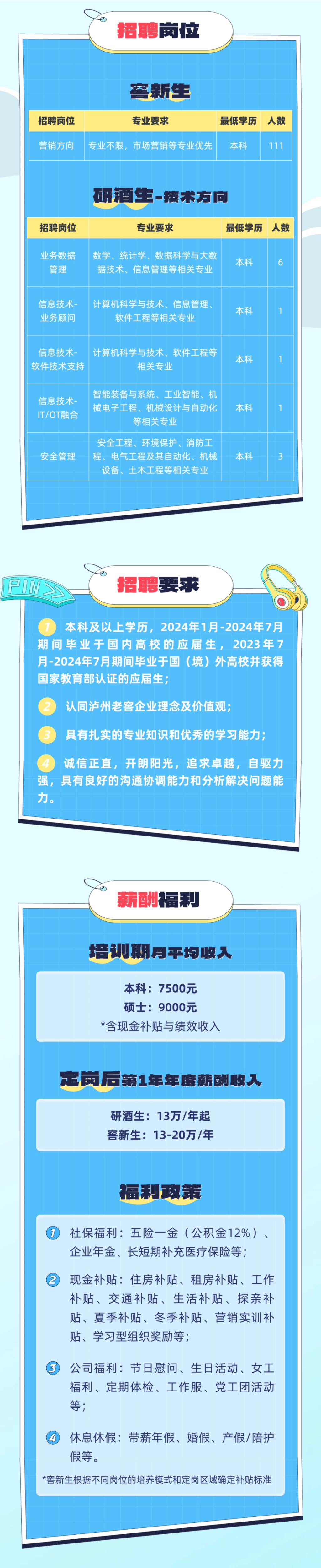 国企春招 | 年薪13-20W,六险二金+各类补贴齐全!泸州老窖2024春招