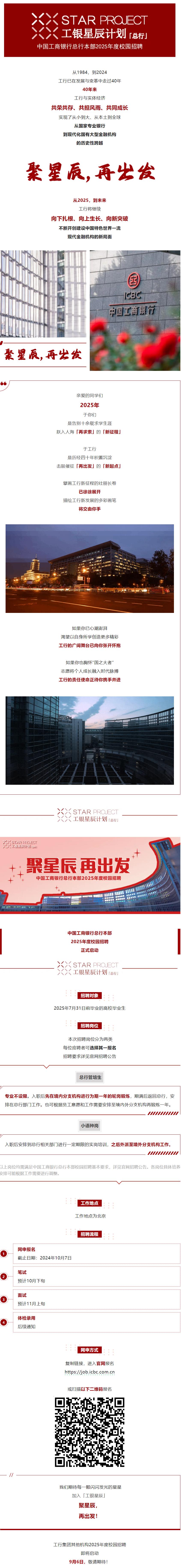 聚星辰,再出发 | 工行总行本部2025年度校园招聘正式启动