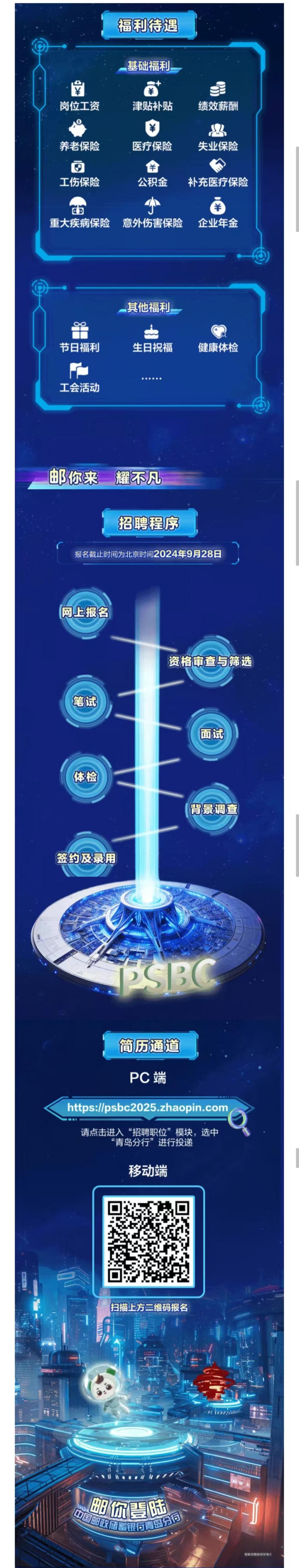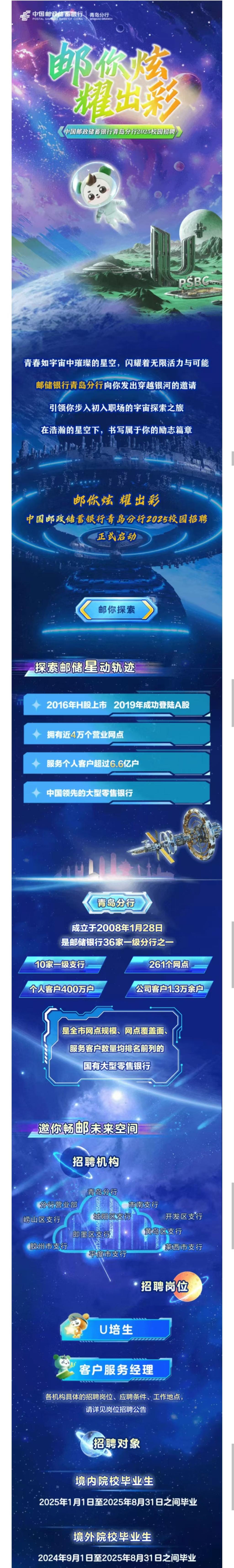 青岛|中国邮政储蓄银行青岛分行2025校园招聘