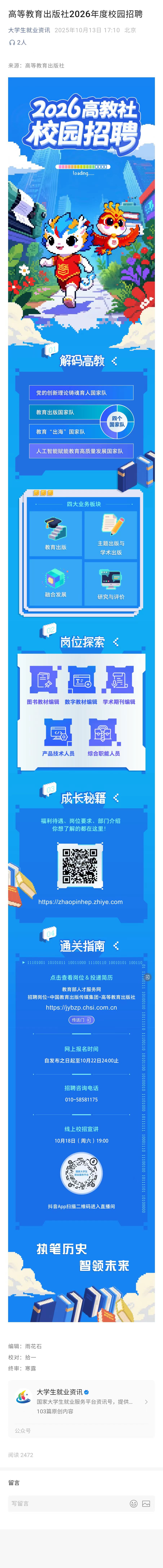 高等教育出版社2026年度校园招聘
