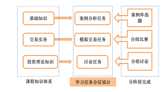 通过教学改革实现《证券投资学》教学模式从注重知识传授的“以教为中心”到“知识+思维方式+创新力”并重的“以学为中心”的转变。通过线上线下混合式教学,结合TBL(基于团队的教学方法)、PBL(基于问题的教学方法)等教学方法,构建新型《证券投资学》教学体系。进行启发式讲授、互动式交流、探究式讨论,做到教学相长,通过线上线下结合、行业热点研讨、具体问题启动、精选案例导入、前沿成果介入、拓展第二课堂等多个模块构建《证券投资学》高效率课堂。其中,在线学习模块主要作用于课前阶段,行业热点研讨、具体问题启动、精选案例导入侧重对课中阶段的改革与重构,拓展第二课堂更多归属于课后阶段。