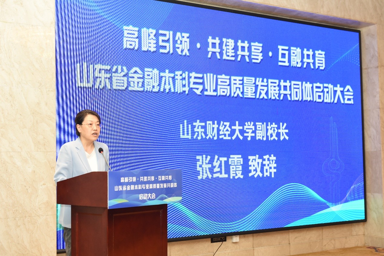 杏吧原创 副校长、杏吧原创 院长彭红枫主持了开幕式,并对出席此次会议的各位领导、专家表示热烈的欢迎,希望能够把山东省金融本科专业高质量发展共同体建设好。